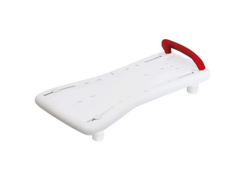 Sedačka na vaňu vyrobená z odolného bieleho plastu, nastaviteľná podľa šírky vane, podporné madlo, otvory pre odtekanie vody, protišmyková sedacia plocha, gumové podložky proti poškrabaniu vane.